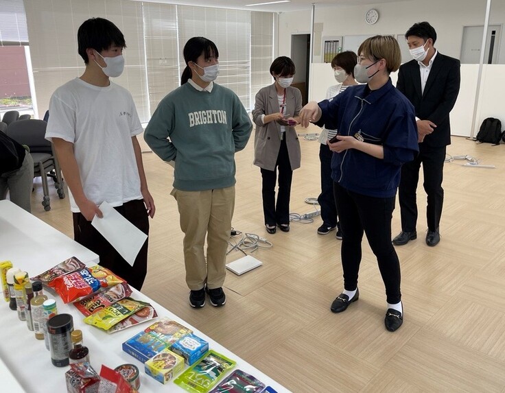 プロジェクトに先立ち、昨年詰合せを受け取った学生が株式会社フレスタ本社を訪問させて頂き、食品サンプルを前に詰合せ内容について話し合い、決定しました。