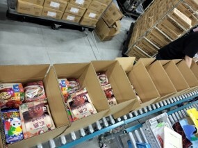 フレスタ様の配送センターにおいて、広島の食材たっぷりの食料品詰合せの発送準備が進んでいます!