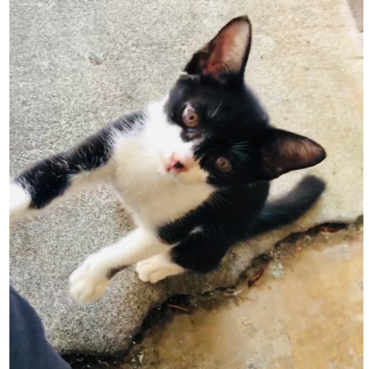昨日餌やり場にひとりぼっちで置いてけぼりにされちゃった子猫です。