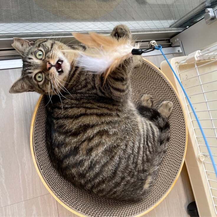 そんなティーグル君、まだ7、8ヶ月の仔猫だけれど5キロ近く体重もあって大きい🤭
