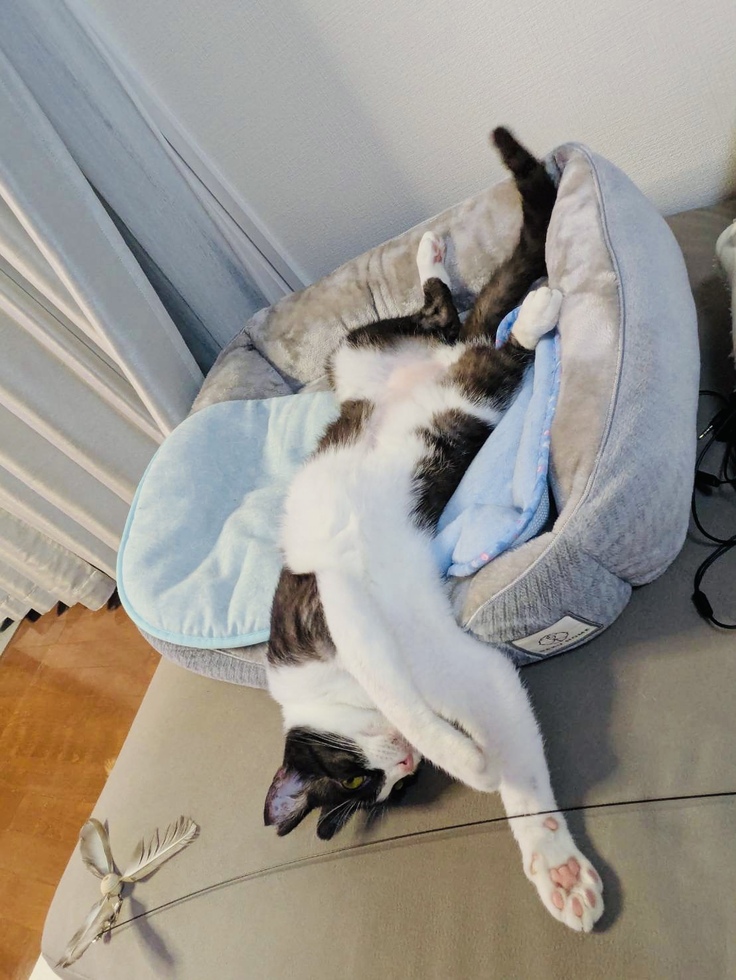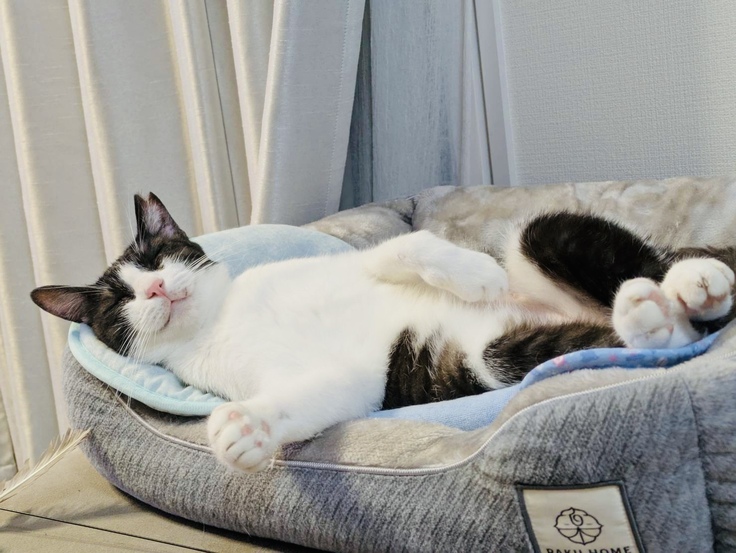 今ではこんなにリラックスして寝れるようになって究極の甘えん坊ちゃんになっています。⬇️