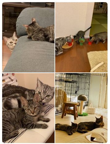 今はママンとななちゃんが少しずつ距離を縮めて行っています。里親様の夢でもあった3匹一緒にごはん