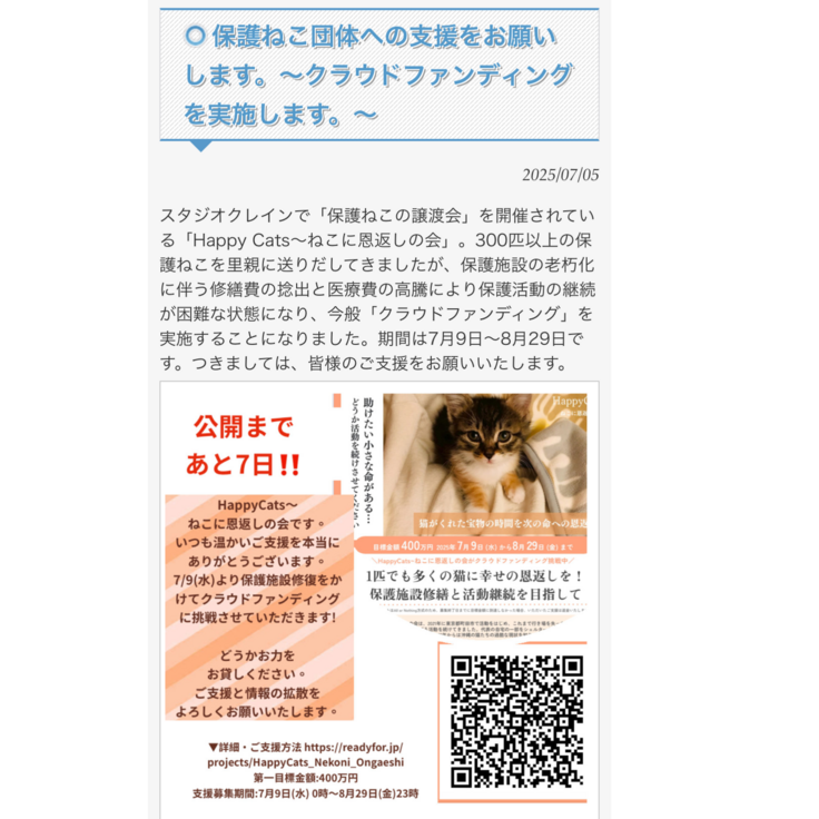 https://readyfor.jp/projects/HappyCats_Nekoni_Ongaeshi?sns_share_token=&utm_source=pj_share_url&utm_medium=social