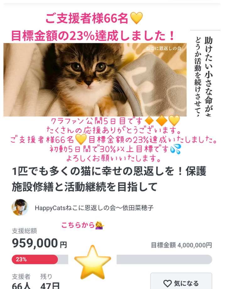 猫たちのためにも達成したいと思っています(ง •̀ω•́)ง