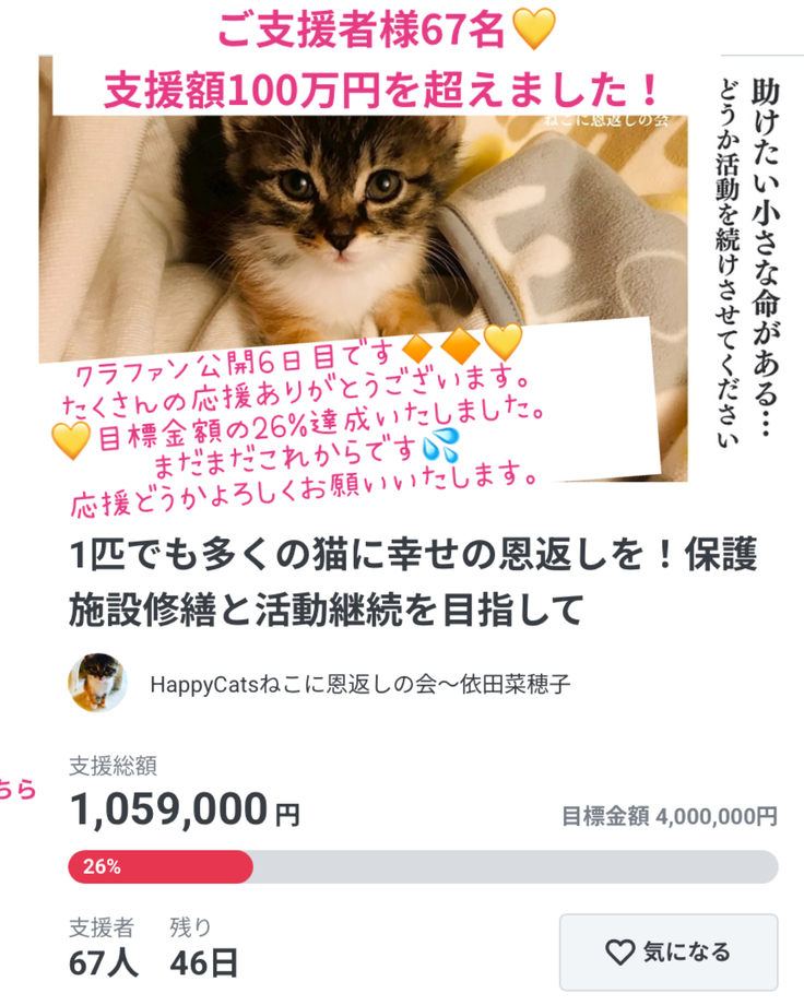 7/14💓公開6日目 ご支援額100万円を超えました!