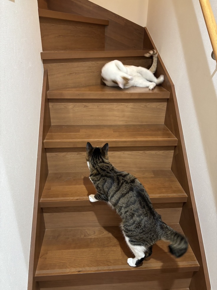 先住猫ちゃんとも仲良く遊べるようになり無事に正式譲渡になりました。