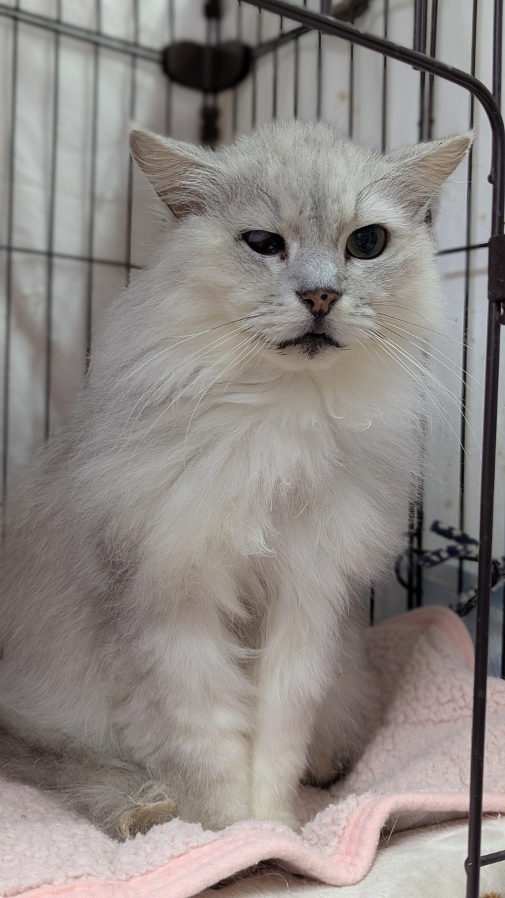 ニニはペルシャ多頭飼育崩壊からレスキューされて2021年にシェルターにきました。年齢不詳ですが、寝てる事が多いのでシニア猫だと思われます。