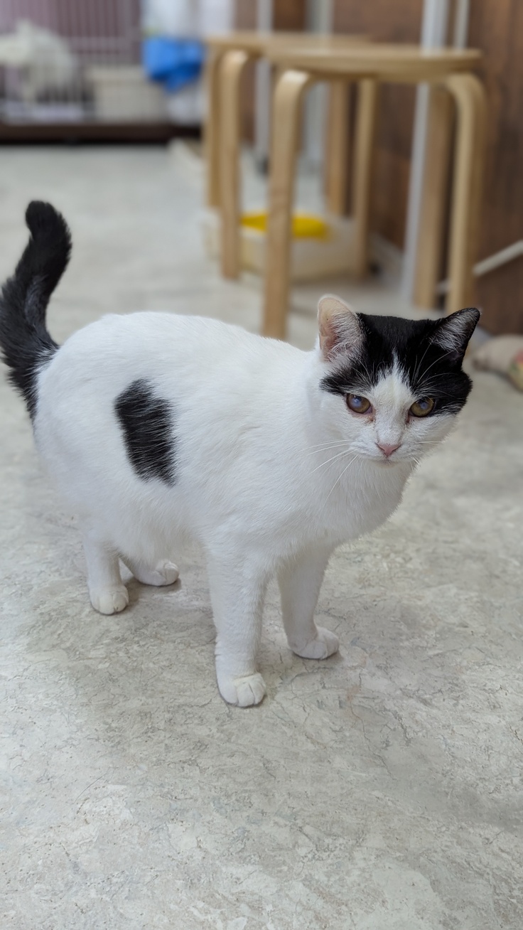 可愛い容姿で来た当初はたくさんお声がけいただいていたのですが人馴れができていなかった為、譲渡に繋がりませんでした。シェルターでボランティアさん達に可愛がられているうちに今では甘えん坊のベタベタちゃんになりました😊