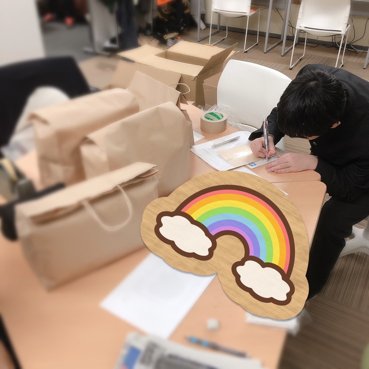 北照オリジナルのTシャツ、パーカー、そして手作りワイングラスの発送準備をしました。袋には生徒が書いたはがきも同封しました。