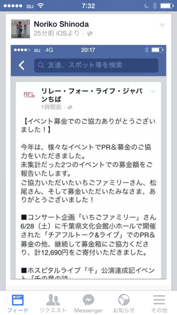 お陰様で昨年、日本対癌協会、千葉県婦人科癌患者会 に皆様のお気持ちを寄付という形で贈ることが出来ました。有難うございます。Facebook のみのご連絡であった為、遅くなり申し訳ありません