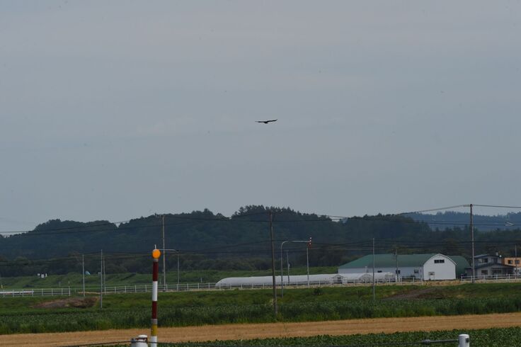 輸送ケージから歩み出て、短い飛翔を交えながら草むらの中をノソノソ歩き。。だいぶ時が経ったのち、丘の上からおもむろに飛び立ち、一気に大空を飛び去ってゆきました。