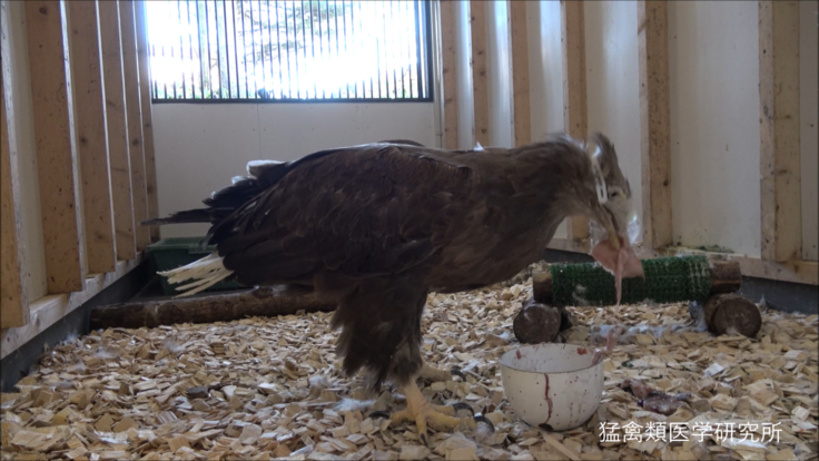 上の嘴(くちばし)を事故で失い、義嘴を使って生活するオジロワシ“Bec(ベック)”。今日の食事はタラ。軟らかくてちょっと食べにくかったね。。ゴメン💧