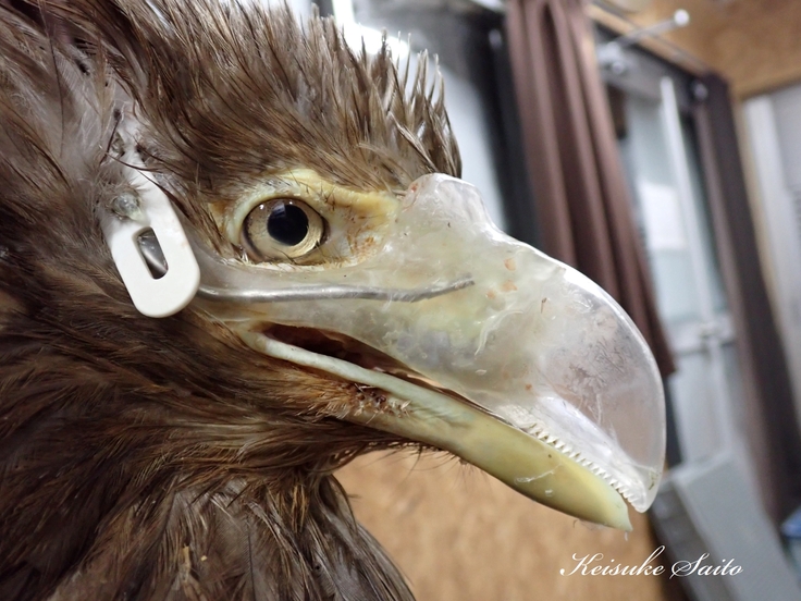 今日はベックの一日だった。 北海道新聞で義嘴を使って生活するオジロワシ“ベック”が紹介されたことで、各所からの問い合わせが相次いだ。当のベックは、魚の鱗が目に入ってしまい角膜炎を起こしていたが、点眼治療により状態はだいぶよくなった。シマフクロウの“ちび”に次ぐ、猛禽類親善大使としてこれからも元気に頑張ってもらいたい。