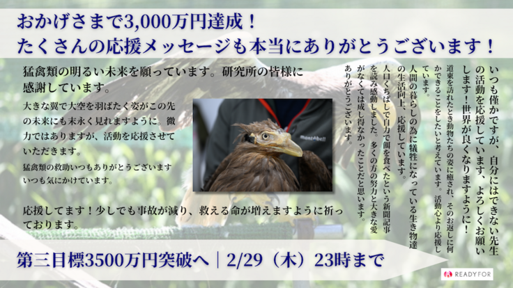 人間によって傷ついた野生猛禽類のため、引き続きどうぞよろしくお願い申し上げます!