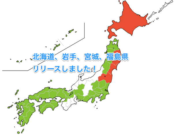【リリース情報】北海道、岩手、宮城、福島県をリリースしました