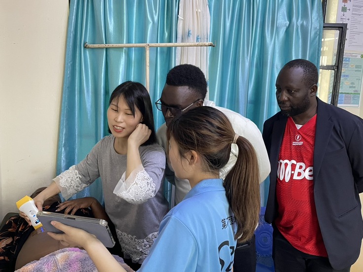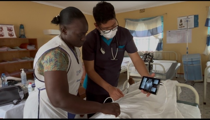 現地の人も積極的にエコーを触って体験していました。私達も横で見ることができました。今まで中々エコーに触れることは無かったので、私達にとっても貴重な体験でした。