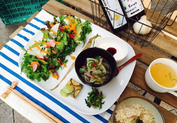 地元の生産者へ出向き、直接買い付けた地場のお野菜をふんだんに使ったカフェメニューを提供しています。料理研究家集団「チーム生駒組」メンバーが腕によりをかけて、心も身体も喜ぶランチを楽しんで頂けます。