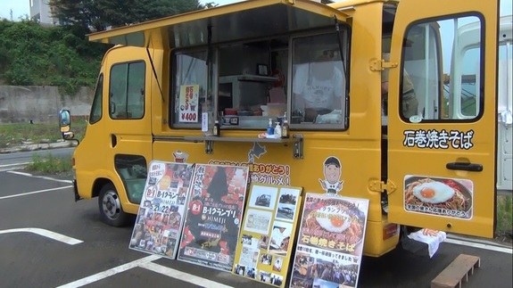 (キッチンカーでご当地B級グルメ「石巻やきそば」を焼いています。)