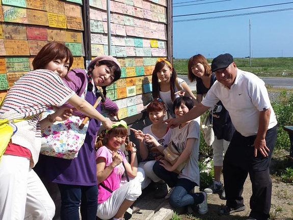 今では外部から来られた人が被災された人へメッセージを伝えていく場所にもなっています。外壁は津波によって被害を受けた塩害木でつくり、同じく塩害木でつくったメッセージプレートにメッセージを書いて頂きます。そしてそのプレートを自らの手で壁に釘で打ちつけてもらっています。北海道から沖縄まで、そして海外もヨーロッパやアメリカ、アフリカなどからも想いのあるメッセージが届き、この地に住んでいた人へ希望と絆を伝えています。