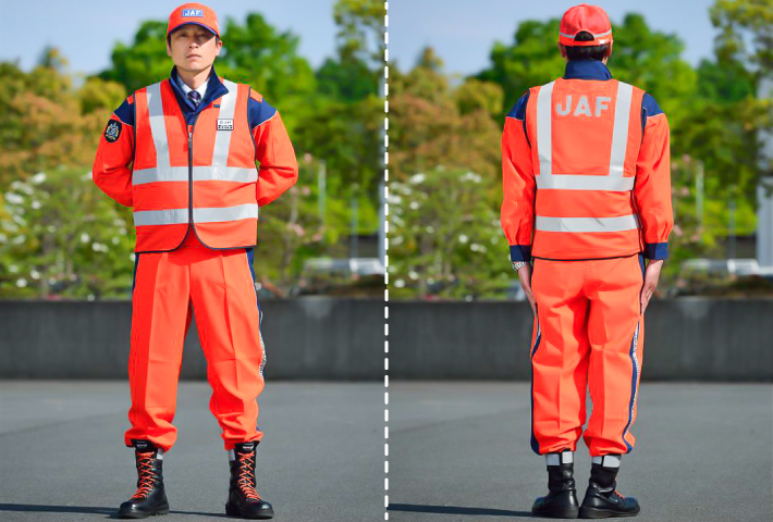 そのため、JAF隊員の制服には高視認性安全服が採用されており、ドライバーに存在をいち早く認識してもらうことで、安全を確保しています。