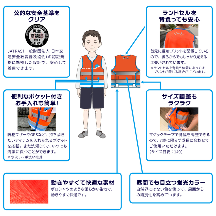 子どもたちが安心して登下校できるように、JAFが考えた“見える”ベストです。