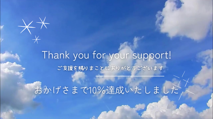 みなさまからたくさんのご支援を賜り、おかげさまで目標金額の10%を達成することができました。