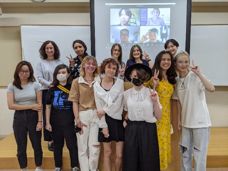 イベント実現に向けて活動するインターン生は、日本経済大学のウクライナ人学生22人、日本人学生2人です。それからキーウ言語大学の学生も5人参加します。ほとんどの学生は福岡にいて、日本映像翻訳アカデミーは東京にあるので、おもにオンラインで字幕翻訳を学ぶ研修をしたり、トークセッションの企画のためのミーティングをしたりしています。