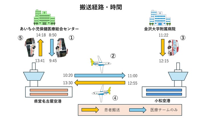 皆様の多大なるご支援のお蔭で、虚血性心疾患をもつ0歳男児を、金沢大学 ⇒ 小松空港 ⇒ 県営名古屋空港 ⇒ あいち小児保健医療総合センターに搬送できました