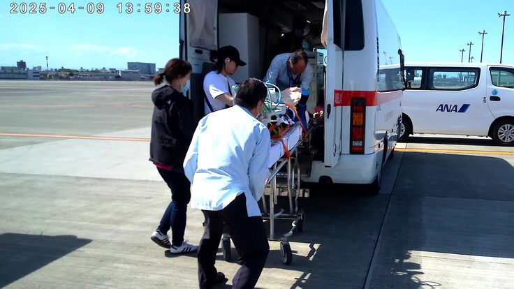 13時50分に無事に羽田空港に到着しました。その後、東京都立小児総合医療センターのドクターカーで搬送され、15時05分に無事に東京都立小児総合医療センターに到着しました