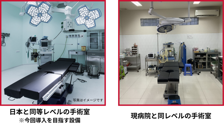 ・設置する手術室4室の機能を日本と同等レベルの高機能にせず、現病院と同等レベルにとどめる。