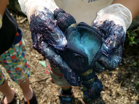 浸けた布も最初は緑。そこから空気に触れさせると、