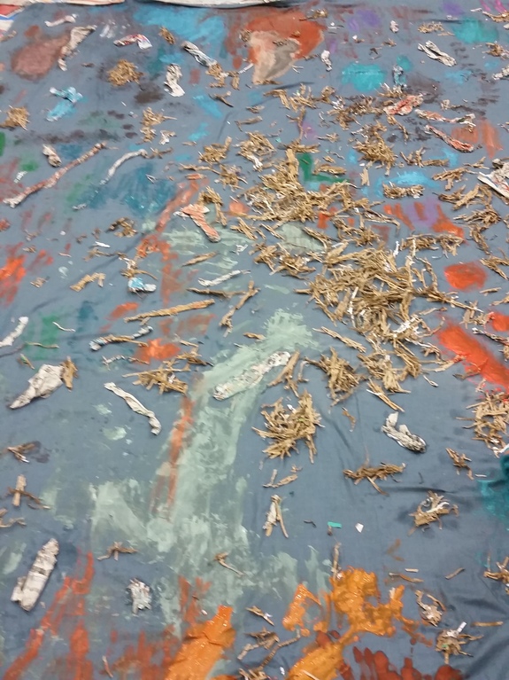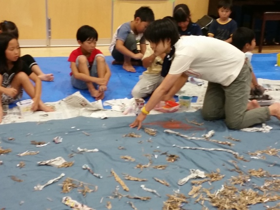 今回使うものは、筆だけじゃなくてタオルやTシャツなどの布の切れっ端なんだって!