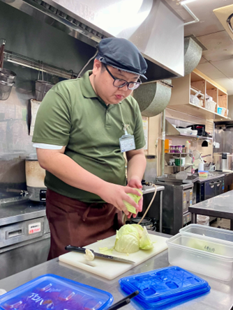 食堂でみんなのためにスープを作ったり、シール貼りを褒めてもらったり、子どもたちのためにケーキを作ったり…。