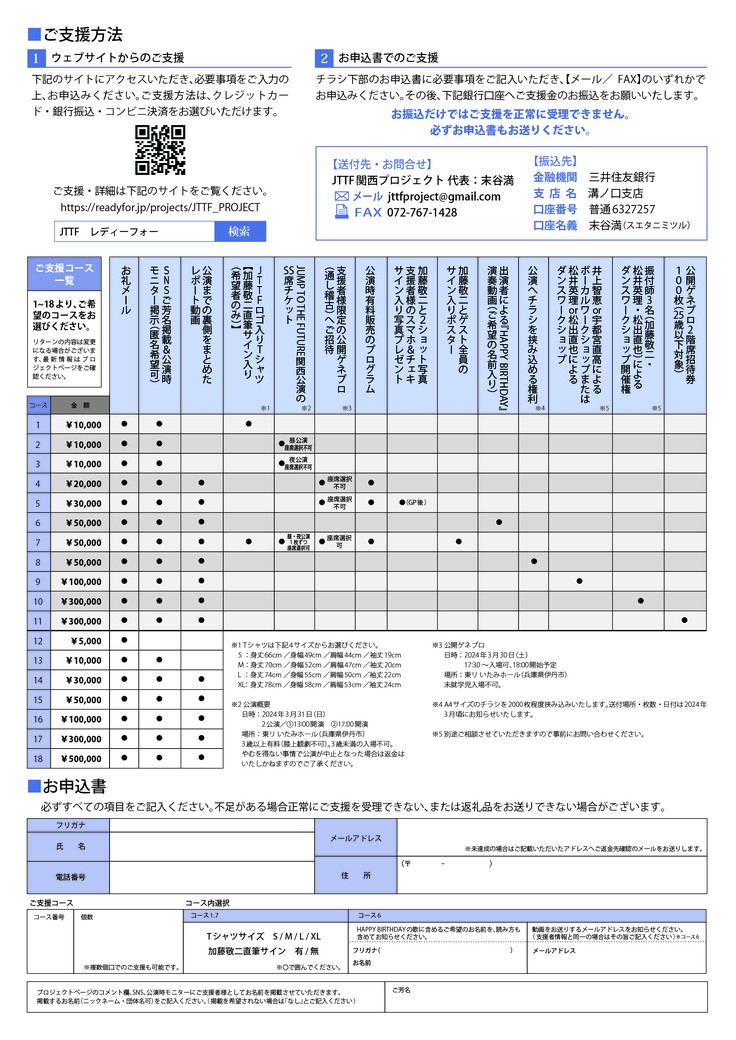 ※クラウドファンディング成立後、やむを得ない事情で公演が中止となった場合は返金はいたしかねますのでご了承ください。