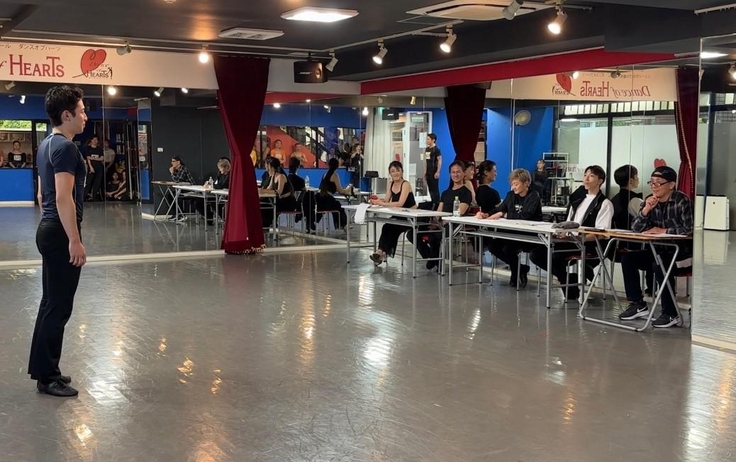 JTTF関西PROJECT代表の末谷満よりオーディション開会の挨拶が行われ、課題振付指導がスタート。