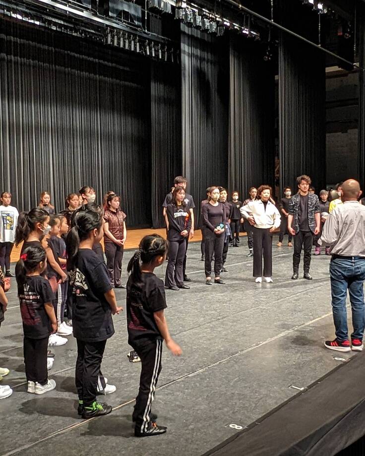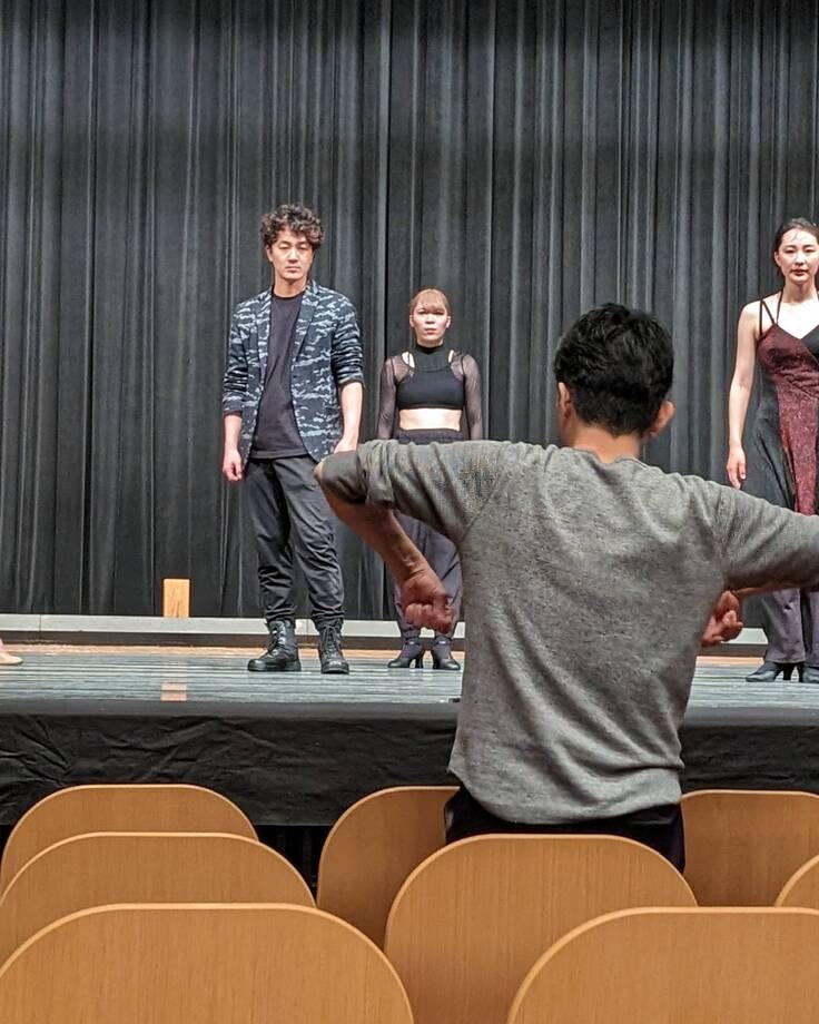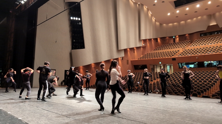 ステージで本番通りの動きを行い、ぶつかる危険がないかなど注意を払いながら場当たりを行っていきます。