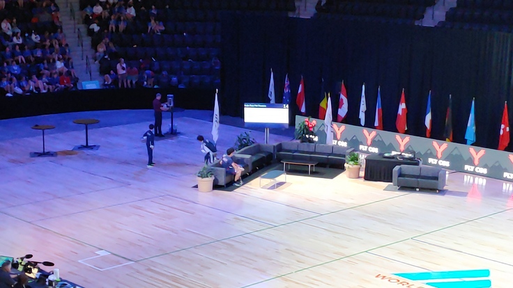 アリーナにソファ席なんてこの世界選手権大会が初めてなので、我が子たちはなんだか落ち着かない感じでした。