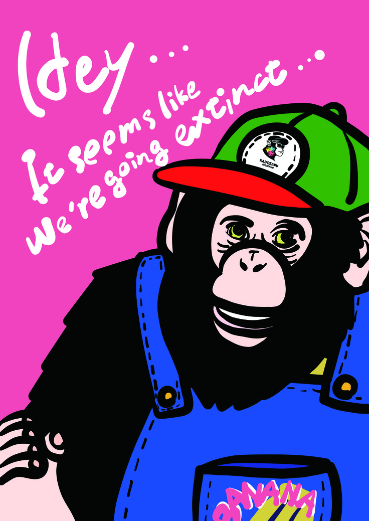 「猿をモチーフに描くアート」 幼い頃から身体を動かすのが好きで、身体も小さくイタズラ好きだった事から、家族や周りからは「お猿さん みたいだね」とよく言われていました。 当時は、悪口としても「猿!」と呼ばれる事もあり、自身コンプレックスでもありましたが、大好きな漫画や映画 の多くに猿をモチーフにしたキャラクターが主人公になっていたり、豊臣秀吉をはじめ、歴史上に名を残している人の呼び名 や縁起物の中には「猿」のイメージしたり祀る物が多く存在している事を知って、猿( 自分) という存在を肯定的に捉える事が出来るようになって行きました。