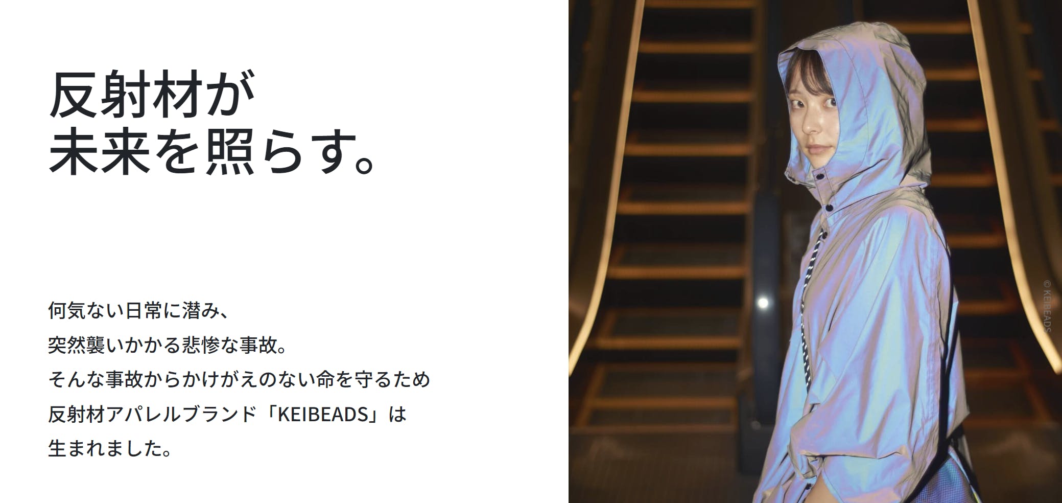 (株)Eco Builds(KEIBEADS事業)が、人々の安全を第一に考えた反射材プロダクトです。