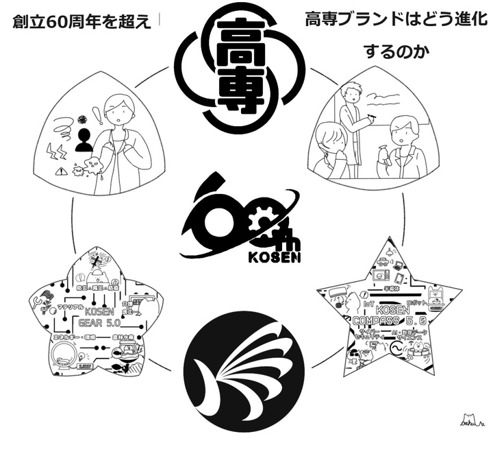下記のイラストは「進化する高専の次のステップ」を多方面からイメージする図案です。