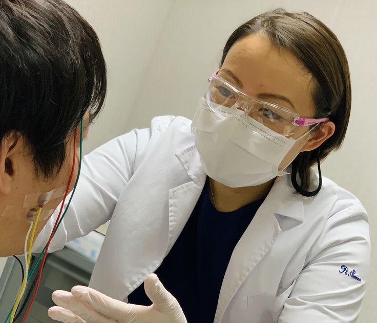 ※ 筋電図は、口を開閉する筋肉の上に小さな電極シールを貼って測定します。体に直接電流を流すわけではなく、口を開閉した時に合わせて発生する電流を測定するものであり、痛みはありません。