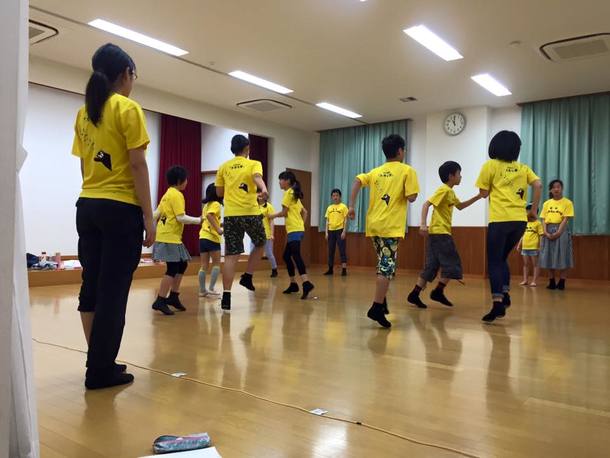 (避難所になっていた練習場が使えるようになり、練習を再開した熊本子どもミュージカルの子どもたち)