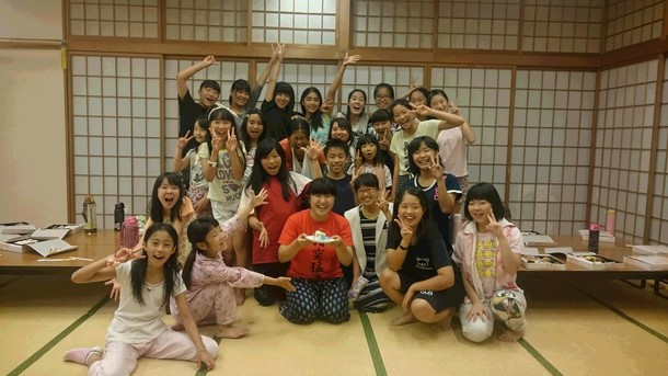 宿泊所では23時に強制消灯。朝は元気におにぎりを食べ、2日目のレッスンでは寝不足ぎみでもうとうとすることなく、最後まで真剣な眼差しで稽古に取り組み、とても実りある合宿でした。