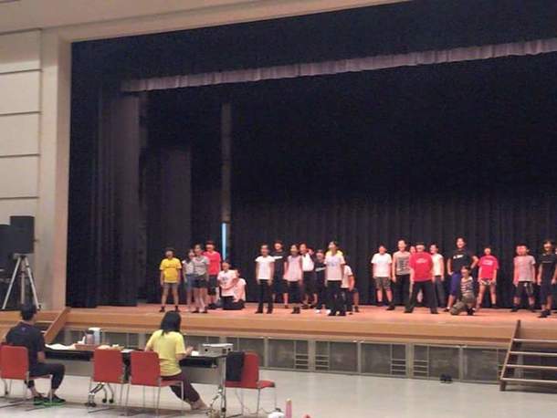 合同合宿練習では、熊本公演の通し稽古、福岡公演の通し稽古をそれぞれ行うなど、自分と同じキャストの子の演技を見たり、普段見ることができない他地区の子どもミュージカルの子たちの演技を真剣に見ていました。とても良い刺激を受け、宿泊所では夜遅くまで、お互いにアドバイスし合うなど仲良く自主的に練習していました。
