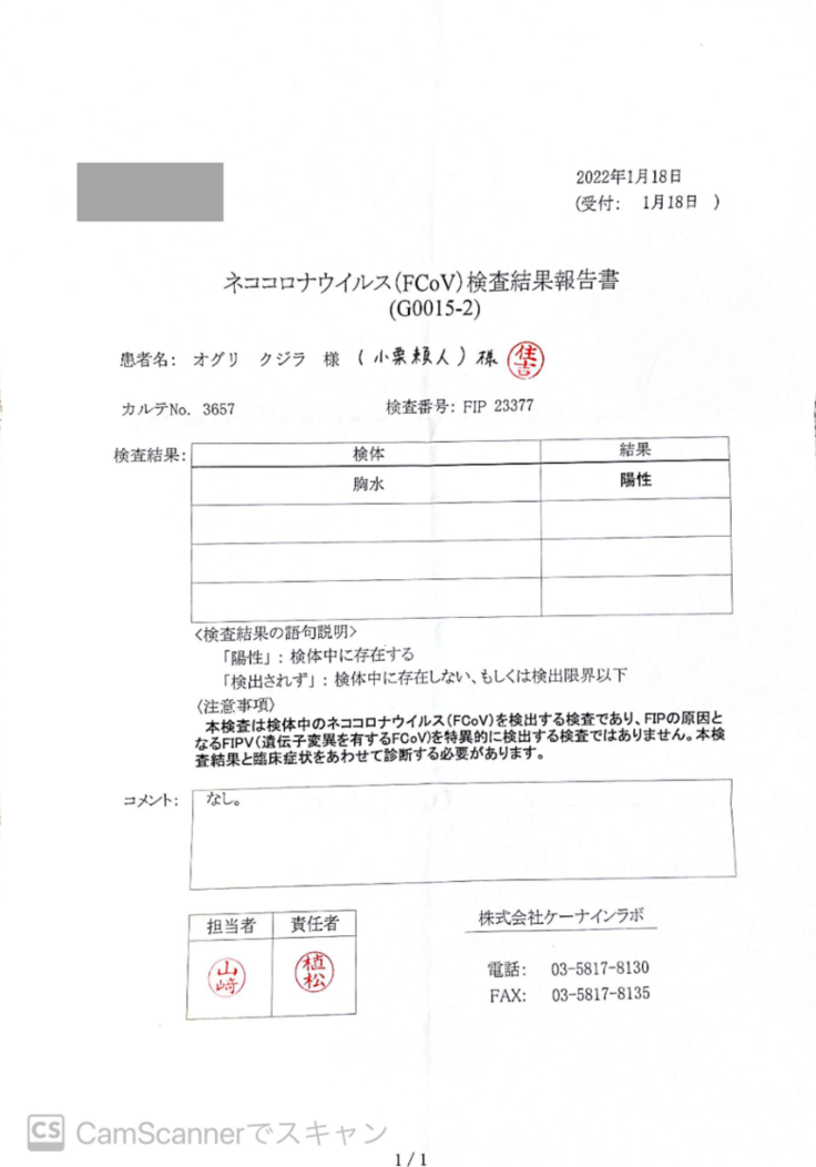 FIPといえば不治の病で治らない病気でもうこの子の一生は終わってしまうのかと涙が止まりませんでした。