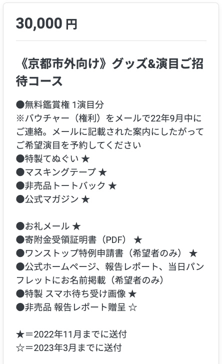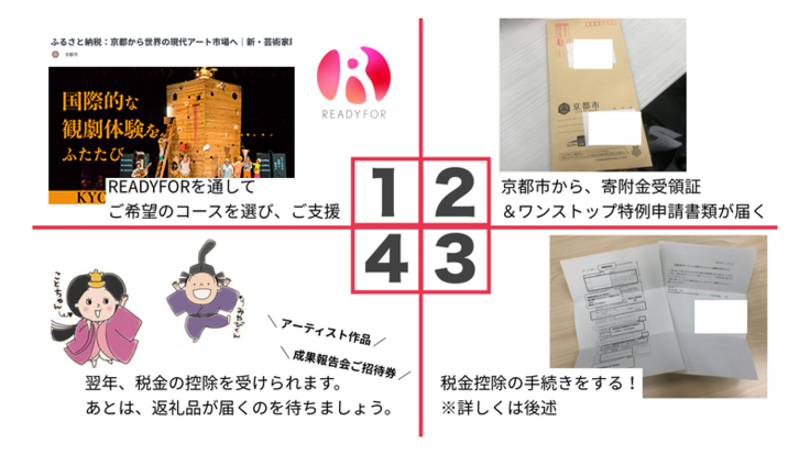 ①クラウドファンディングでのご寄附完了後、京都市から、12月中に「ワンストップ特例申請書」をお送りします。