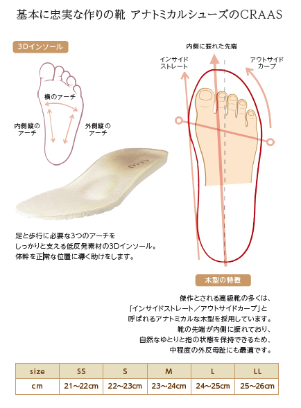 本当に喜んでもらえる靴のヒミツは、着地時の踵のショックを低減するショックアブソーバー機能を兼ねた低反発素材の3Dインソール、足入れと履き易さを重視した構造で体幹をニュートラルバランスに導く設計など…詳しくは下記をご覧ください!