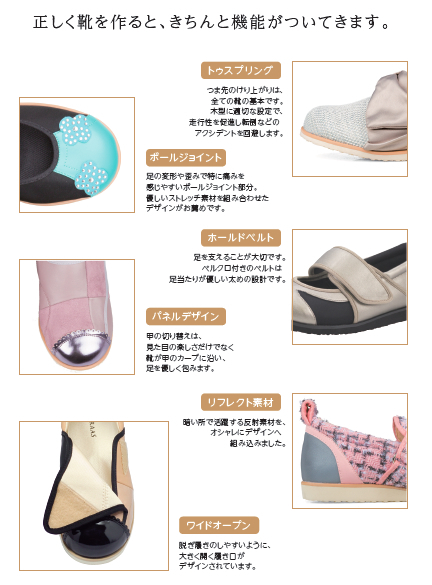 そんな中、世の中には可愛い靴が溢れているのに 足に悩みを持つシニア女性の為の可愛い靴の選択肢は全くないことに疑問を感じました。 足に悩みのある方や、ご高齢で選べる靴が少なく、お洒落を諦めなければならない女性がたくさんいらっしゃる事を、長い間見過ごしてきていました。