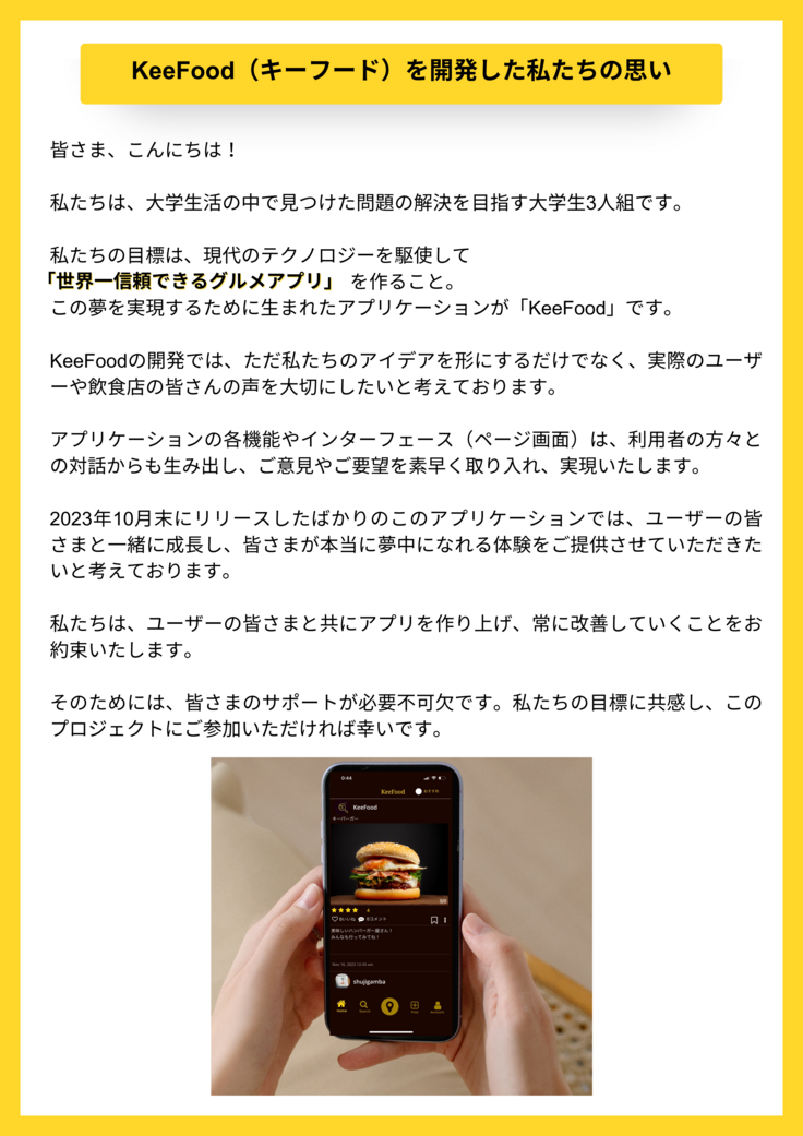 世界一信頼できるグルメ特化型SNSアプリを目指す
