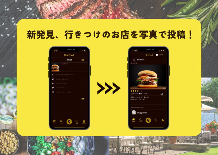 これは、飲食店の方々は「お客様の食べたいに夢中にさせる」そして、アプリ一般利用者の方々は「食べたいという感情に夢中になる」といった背景から、このコンセプトを考えました。